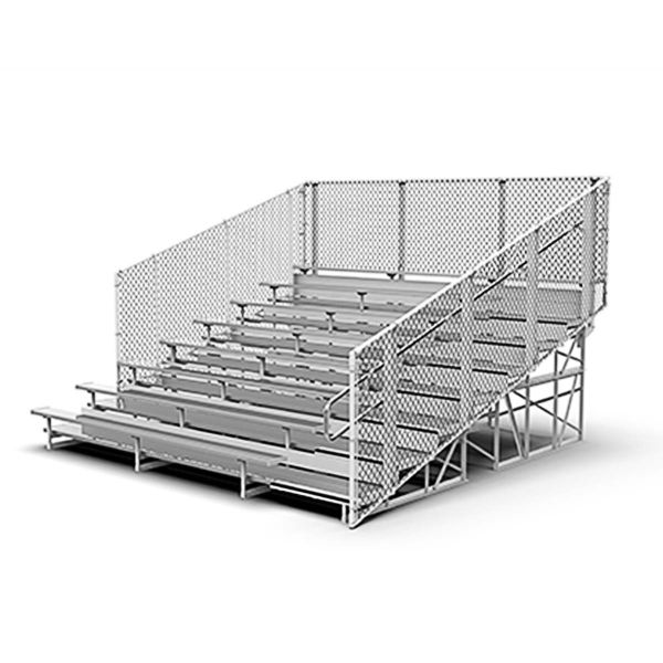 We have eight-row bleachers that are 15 feet, 21 feet, and 27 feet wide. Our largest eight-row bleacher can seat up to 144 people. Built with quality craftsmanship, the spaciousness and ergonomic designs elevate comfort levels and viewing experience for spectators and fans alike.